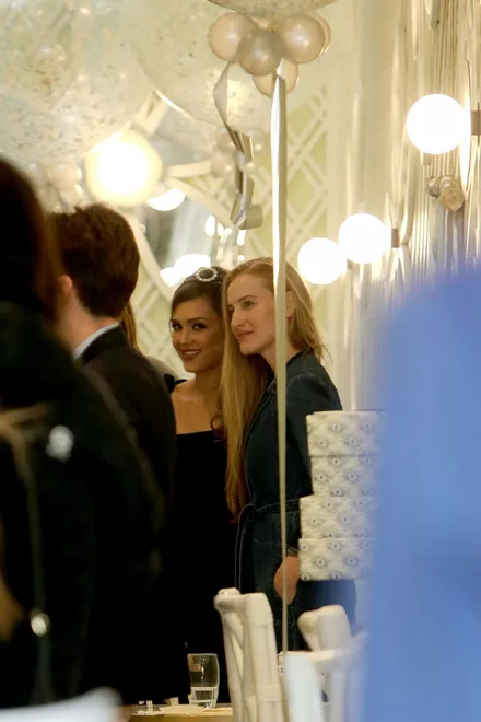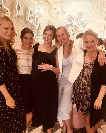 Φορώντας ένα εντυπωσιακό μαύρο φόρεμα με φιόγκους και σατέν κορδέλα στα μαλλιά η 34χρονη ηθοποιός ταίριαζε απόλυτα στο tea party όπου πραγματοποιήθηκε στο διάσημο ζαχαροπλαστείο Ladurée. Από τo baby shower φυσικά δεν θα μπορούσαν να λείπουν οι καλύτερές της φίλες!