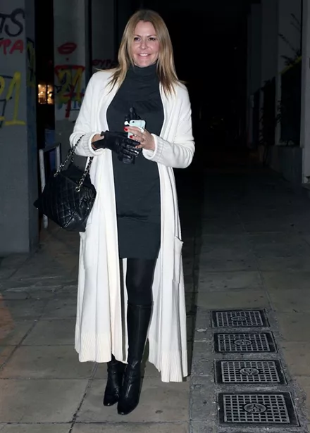 Η παρουσιάστρια της εκπομπής Jenny Jenny πραγματοποίησε μια super chic εμφάνιση, παρά το τσουχτερό κρύο, φορώντας ένα φόρεμα με λευκό μαντό, το οποίο συνόδευσε με οπάκ καλσόν και μαύρα γάντια.