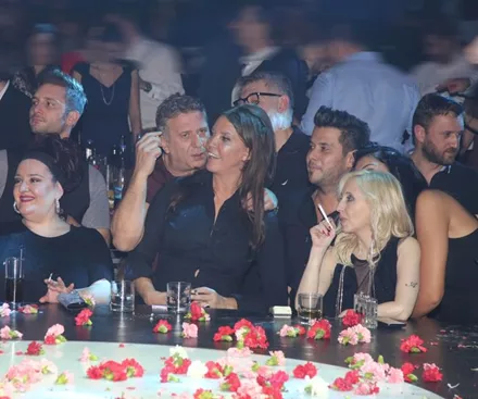 Στο «Τeatro» εντόπισε ο φωτογραφικός φακός την Βάνα Μπάρμπα μαζί με τον Κώστα Κόκλα και την παρέα της.