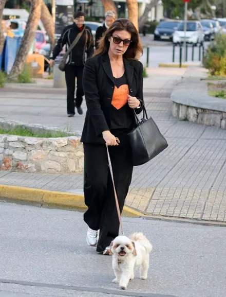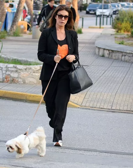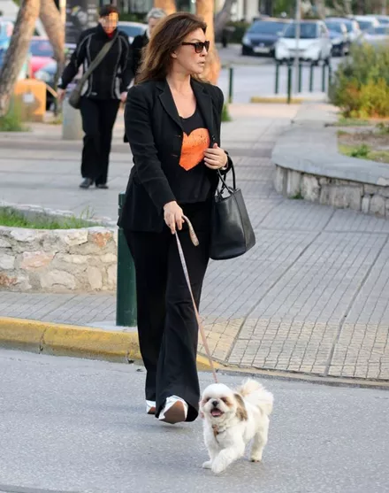 Στα νότια προάστια και συγκεκριμένα στην Γλυφάδα απαθανάτισε ο φωτογραφικός φακός την Βάνα Μπάρμπα, να απολαμβάνει τη βόλτα της με το σκυλάκι της.
