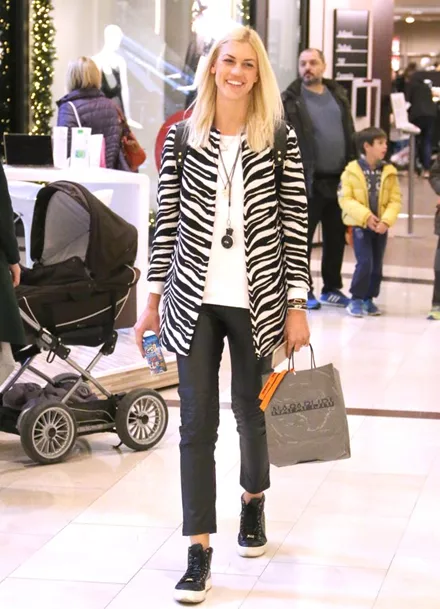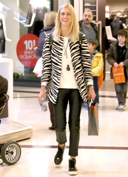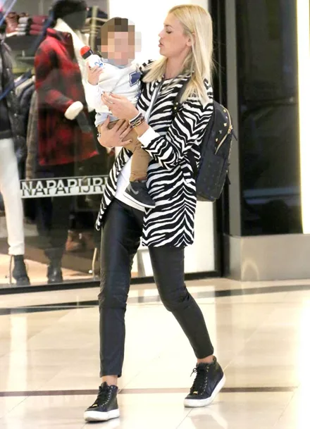 Το πρώην μοντέλο, περνά πολλές ώρες παρέα με τον γιο της και όλος ο ελεύθερος χρόνος της είναι πλέον αφιερωμένος στην οικογένειά της και σ’ εκείνον. Η ευτυχισμένη μανούλα, δεν χάνει ευκαιρία να περνά χρόνο μαζί του, έτσι ο φωτογραφικός φακός την απαθανάτισε σε μία τέτοια στιγμή, απόλυτης ευτυχίας και χαλάρωσης, να κάνει τα ψώνια της παρέα με τον γιο της, με casual look, φορώντας ένα κολλητό δερμάτινο παντελόνι, ασπρόμαυρη ζακέτα και μαύρα sneakers.