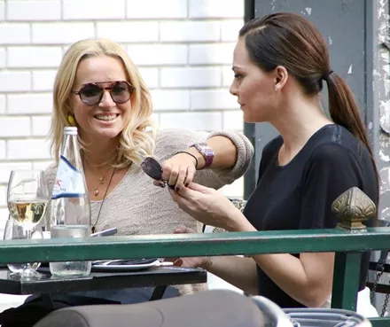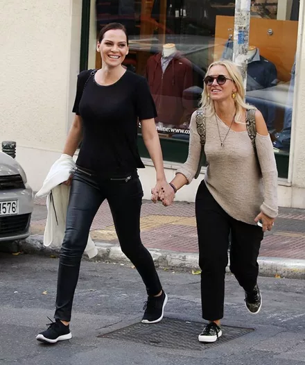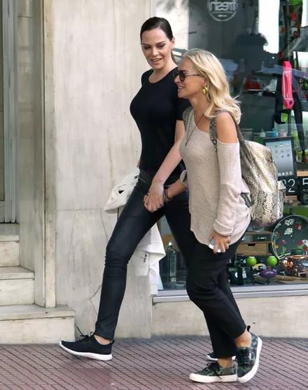 Οι δυο φιλές πιασμένες χέρι-χέρι απόλαυσαν τη βόλτα τους στα μαγαζιά, αλλά και το μεσημεριανό τους σε εστιατόριο της περιοχής.