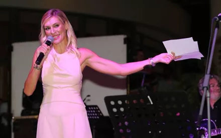 Η ηθοποιός μαγνήτισε τα βλέμματα με την λαμπερή εμφάνισή της ενώ αξίζει να σημειωθεί πως παρουσίασε την μουσική παράσταση μαζί με τον Δημήτρη Μακαλιά.