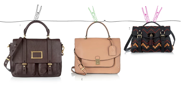 1. Ο Marc Jacobs επιστρέφει στο σχολείο με ένα satchel που αναβαθμίζει το preppy-chic 2. Η ιδανική 24/7 τσάντα ώμου έρχεται δια χειρός Tory Burch με θήκες μπροστά και πίσω για όλα τα απαραίτητα και εσωτερικό καθρέφτη 3. H Alexa του οίκου Mulberry είναι ο ιδανικός καμβάς για seasonal αλλαγές. Φέτος υιοθετεί τα aztec prints και γίνεται μέρος της ZigZag συλλογής.