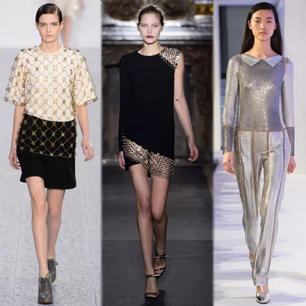 Metallic mesh. Τα μεταλλικά πλέγματα του μεσαίωνα ντύνουν τις σιλουέτες του σήμερα. Θα τα δούμε σε ολόσωμες φόρμες και μπλούζες που θυμίζουν πανοπλία, αλλά και σε λεπτομέρειες που επιτρέπουν στο γυμνό δέρμα να κάνει την εμφάνισή του.
