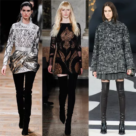 Thigh-high. Οι μπότες μέχρι τον μηρό επιστρέφουν φέτος ακόμα ψηλότερες και θυμίζουν περισσότερο κολάν παρά παπούτσι. Συνδυασμένες με μίνι φούστες και φορέματα αφήνουν ελάχιστα περιθώρια για γυμνό πόδι.