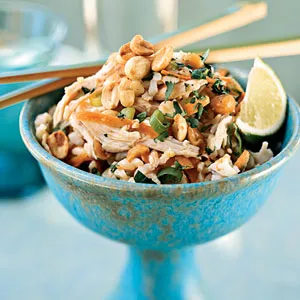 Σαλάτα με καστανό ρύζι, κοτόπουλο και φιστίκια