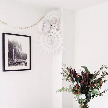 @hannah.straughanΟι περίτεχνες χάρτινες χιονονιφάδες ταιριάζουν άψογα στα πιο μίνιμαλ σπίτια