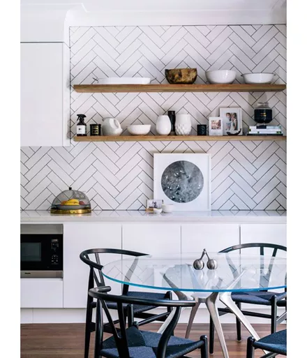 Ένα ιδιαίτερο πλακάκι σε στυλ ψαροκόκκαλο θα δώσει ενδιαφέρουσα υφή στην κουζίνα.