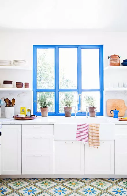 Δεν θέλεις να βάλεις χρώμα στους πάγκους; Δοκίμασε να δώσεις χρώμα στα κουφώματα. Ξύλινες πόρτες και παράθυρα ενδείκνυνται για πειραματισμούς.