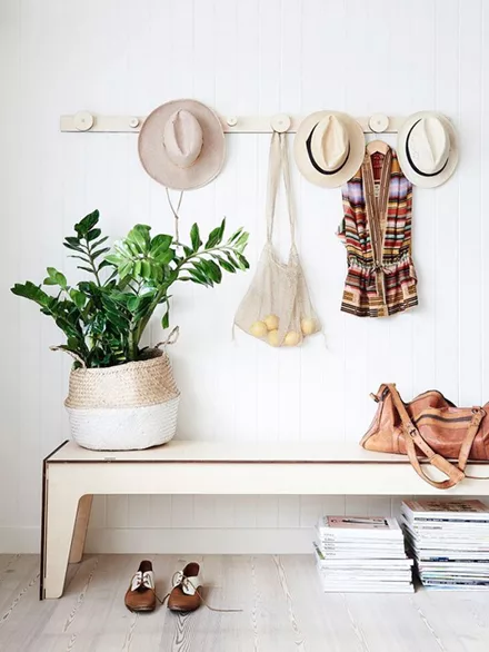 Ένας ιδιαίτερος πάγκος και μια κρεμάστρα είναι όλα κι όλα τα αντικείμενα που οφείλεις να έχεις στην είσοδο του σπιτιού