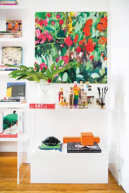 Μια ψηλή κονσόλα με επιλεγμένα βιβλία και διακοσμητικά μαρτυρά τα χόμπι αλλά και το προσωπικό στυλ σου