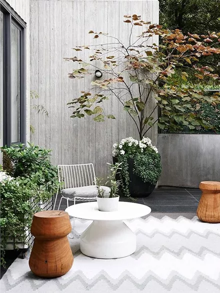 Επίλεξε μονάχα 2 χρώματα στα διακοσμητικά του χώρου έτσι ώστε να κρατήσεις ένα minimal στυλ και στον κήπο