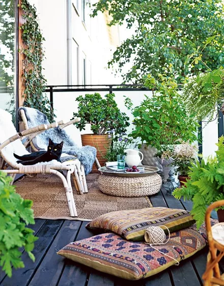 Τα ethnic υφάσματα έχουν τη δυνατότητα να μεταμορφώσουν το πιο λιτό μπαλκόνι στον πιο κοντινό...εξωτικό προορισμό