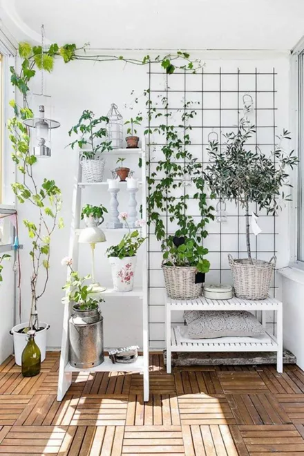 Αναρριχητικά φυτά και ξύλινα διακοσμητικά θα δώσουν έναν κομψό αέρα στο μπαλκόνι σου