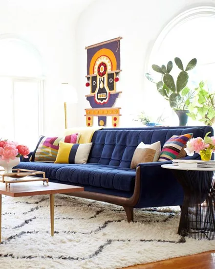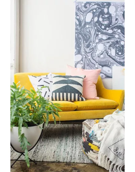 Για ένα πιο μίνιμαλ look επίλεξε ζωηρά χρώματα στα έπιπλα και boho υφές στα μικροαντικείμενα