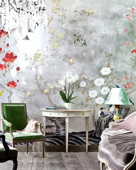 Οι παστέλ αποχρώσεις απαλύνουν την έντονη chinoiserie ταπετσαρία
