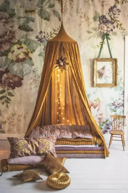 Δημιούργησε μια γωνιά με μαξιλάρια και μια εναλλακτική κουνουπιέρα για να νιώσεις ξανά πριγκίπισσα