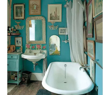 Δώσε ζωή στο μπάνιο βάφοντας τους τοίχους σε ένα εντυπωσιακό χρώμα και διακοσμώντας με πολλά και διαφορετικά μεταξύ τους κάδρα