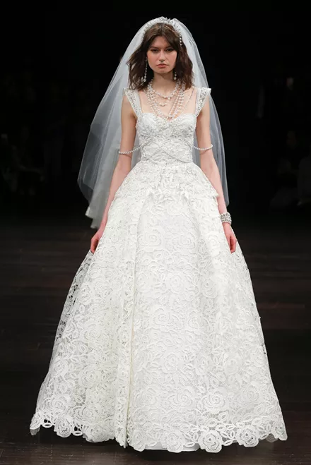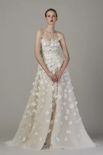 Ρομαντικές watteau πτυχές στην πλάτη, statement πέρλες σε μπούστο, μανίκια και λαιμό, επιπρόσθετες φούστες που βγαίνουν και μπαίνουν ανάλογα με τη στιγμή και, το αγαπημένο μας, εντυπωσιακά 3D λουλούδια που κοσμούν τα πιο φαντασμαγορικά φορέματα!