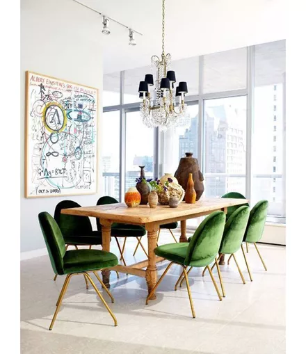 Ντύσε τις καρέκλες της τραπεζαρίας σε πράσινο βελούδο για ένα πολυτελές αποτέλεσμα