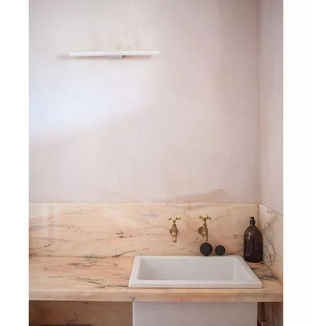 Αν αγαπάς την τσιμεντοκονία αλλά όχι το λευκό, ανάμειξέ τη με ροζ/ μπεζ για ένα αποτέλεσμα που θυμίζει ανατολίτικο spa.