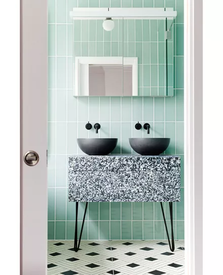 Παίξε με παστέλ αποχρώσεις και γήινες υφές στο μπάνιο για ένα σύγχρονο look
