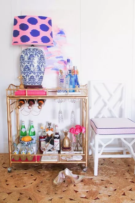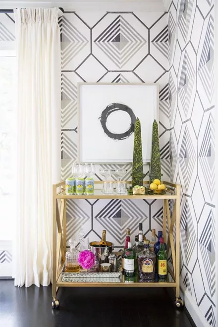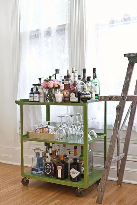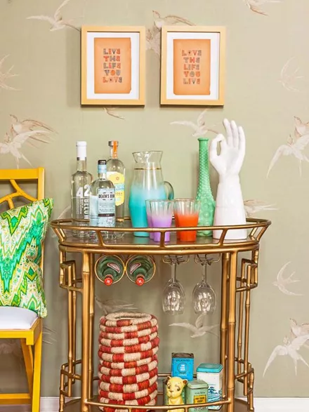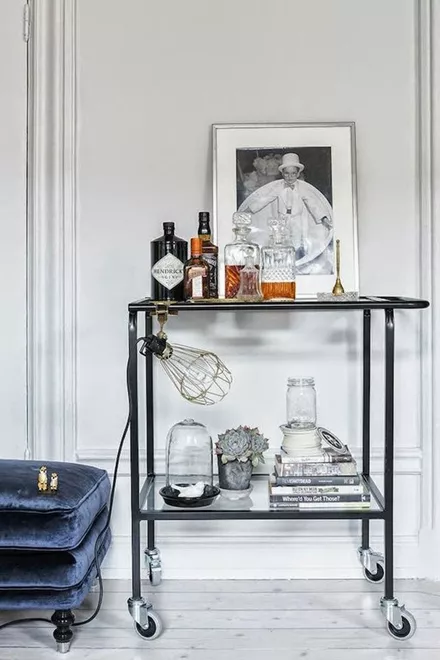 Όσο πιο εντυπωσιακό είναι το design του bar cart, τόσο λιγότερη διακόσμηση χρειάζεται