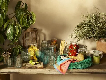 Τα γυαλικά με ρετρό αισθητική και παιχνιδιάρικους χρωματισμούς είναι ο,τι πρέπει για να ζωηρέψουν την κουζίνα σου.