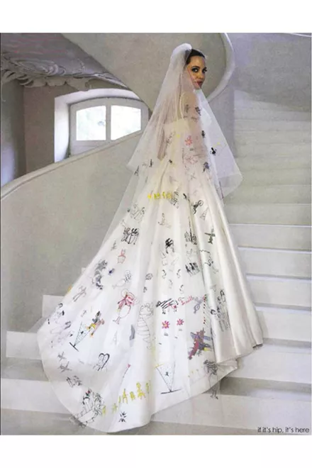 H Angelina Jolie φόρεσε ένα νυφικό Versace με τις ζωγραφιές των παιδιών της κεντημένες πάνω του