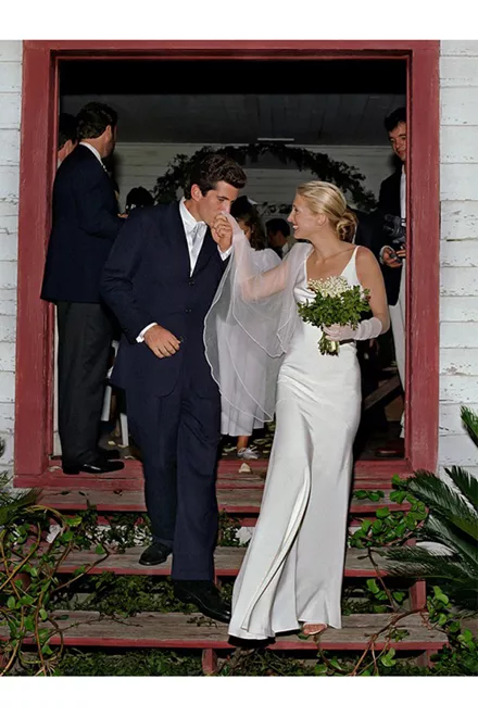 H Carolyn Bessette παντρεύτηκε τον John F. Kennedy Jr με ένα υπέροχο bias cut μεταξωτό φόρεμα του πρωτοεμφανιζόμενου τότε Narciso Rodriguez