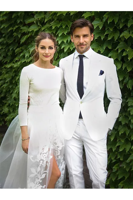 H Olivia Palermo φόρεσε ένα κασμιρένιο πουλόβερ, ένα σορτς και μια διάφανη τούλινη φούστα αντί για νυφικό, όλα δια χειρός Carolina Herrera