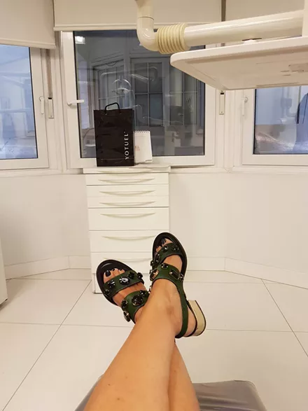 Κάπως έτσι βρεθήκαμε, λοιπόν, την περασμένη εβδομάδα στην ηλιόλουστη Μαδρίτη με τους 32 βαθμούς και μάλιστα σε μία από τις πιο chic περιοχές της, την γνωστή Salamanca. Eκεί βρίσκεται η κομψή οδοντιατρική κλινική Vilaboa της εταιρείας Biocosmetics που σχεδίασε την καλλυντική λευκαντική σειρά YOTUEL, και την οποία επισκεφθήκαμε για να ζήσουμε την εμπειρία της εφαρμογής του whitening kit. Ο ιδρυτής Jorge Rodriguez και οι Dra Deborah Vilaboa και Dra Beatriz Vilaboa ήταν εκεί για να μας υποδεχτούν και να μας ξεναγήσουν, χαμογελώντας μας αφοπλιστικά συνέχεια!