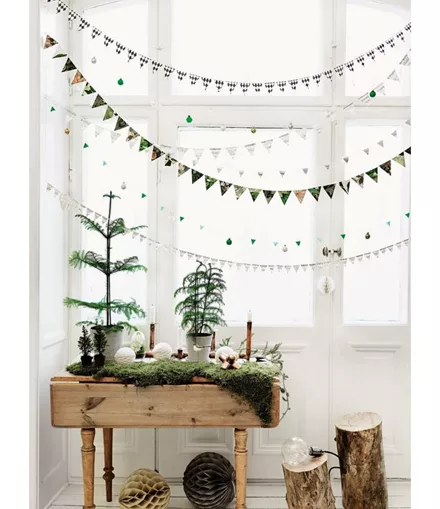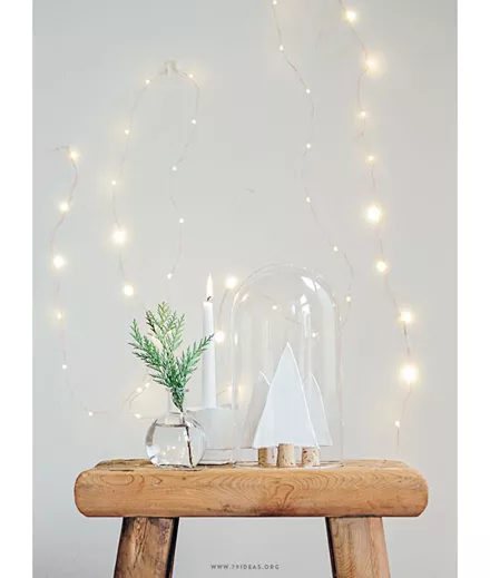 Μια γιρλάντα με λαμπάκια και λίγα αειθαλή κλαδάκια είναι όλα όσα χρειάζεσαι για μια γιορτινή γωνιά.