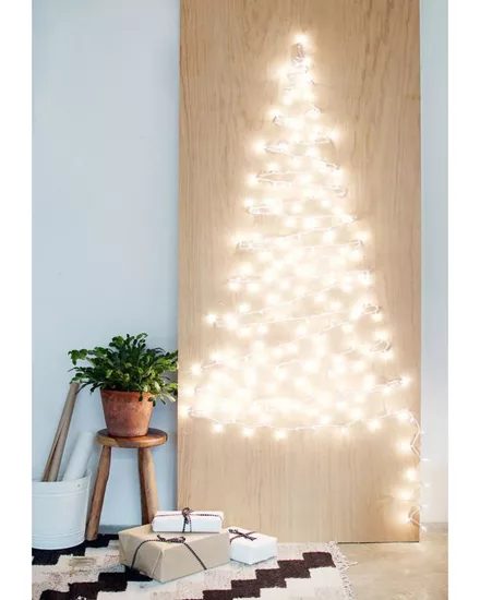 Μια σειρά λαμπάκια μπλεγμένη σε 2 δοκάρια μπορεί να γίνει δέντρο στη θέση του... δέντρου.