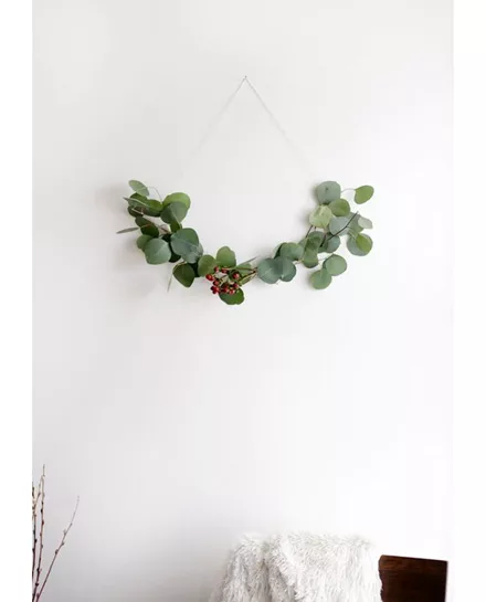 Τύλιξε φύλλωμα γύρω από ένα συρμάτινο "τόξο" και κρέμασέ το στον τοίχο! Έτοιμη η χριστουγεννιάτικη διακόσμηση.