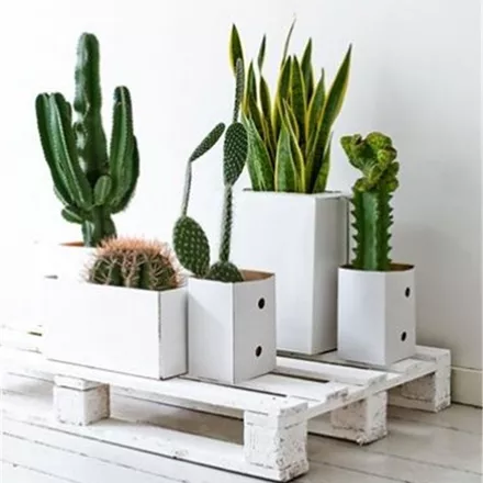 Φτιάξε μια σύνθεση από κάκτους παίζοντας με υλικά όπως η παλέτα και χαρτόκουτα που θα βάψεις λευκά