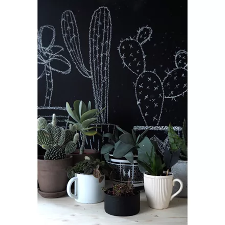 Παίξε με μικρούς κάκτους που μπορείς να φυτέψεις σε κούπες καφέ και ζωγράφισε τις "σκιές" τους σε ένα τοίχο μαυροπίνακα