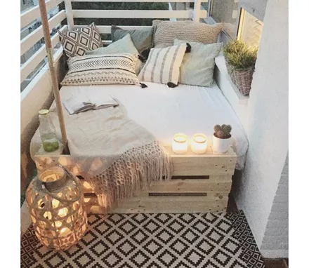 Το μπαλκόνι σου είναι στενό; Δημιούργησε ένα καναπέ/ κρεβάτι με βάση μερικές παλέτες, για να δημιουργήσεις μια γωνιά χαλάρωσης.