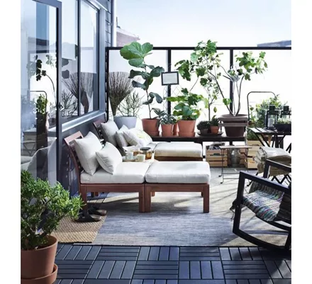 Αν διαθέτεις μεγάλο μπαλκόνι ίσως θες να το διαχωρίσεις χρησιμοποιώντας ξύλινα κουμπωτά πλακίδια. Για να μπορείς να περπατάς και ξυπόλητη!