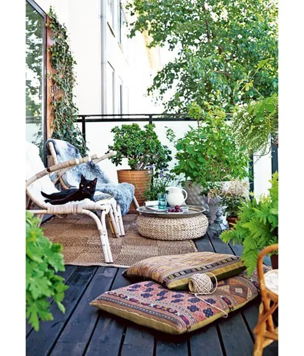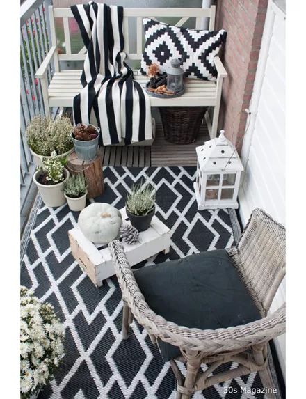 Μην διστάσεις να στρώσεις ένα χαλάκι σε ένα μικρό μπαλκόνι. Έτσι θα μπορέσεις να κάνεις και το πάτωμα... καθιστικό!