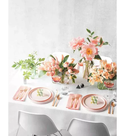Τώρα είναι η ώρα να αναδείξεις τα πιο εντυπωσιακά πιάτα της συλλογής σου! Πάρε λουλούδια σε ένα χρώμα που τα κολακεύει και συνδύασέ τα με τις πετσέτες.