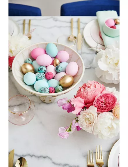 Βάψε αυγά σε ροζ, γαλάζιο αλλά και χρυσό χρώμα και τοποθέτησέ τα μαζί σε ένα μπολ για ένα.. βρώσιμο centerpiece όλο φαντασία!