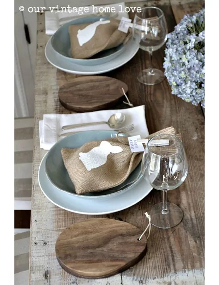 Φτιάξε ένα στένσιλ σε σχήμα κουνελιού και βάψε μικρές θήκες από λινάτσα. Τοποθέτησε μέσα τους αυγά ή σοκολατάκια και κάνε τα δώρο στους καλεσμένους σου.