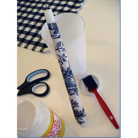 Με την τεχνική του ντεκουπάζ και μια όμορφη χαρτοπετσέτα, θα διακοσμήσεις πανεύκολα το λευκό κερί!