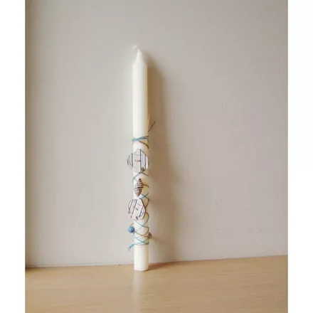 Αν προτιμάς το minimal στυλ, δέσε χρωματιστά σχοινιά στο κερί σου και πέρασε ανάμεσά τους μικρά διακοσμητικά όπως κοχύλια, χάντρες, κουμπιά κτλ.