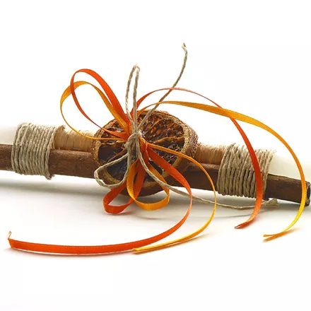 Όμορφη και...μυρωδάτη θα είναι η λαμπάδα σου αν δέσεις πάνω της ξύλο κανέλας και αποξηραμένο πορτοκάλι.