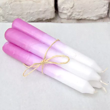 Δώσε ombre αποτέλεσμα στο λευκό κερί σου, βουτώντας το πολλές φορές μέσα σε ένα λιωμένο σε μπρίκι χρωματιστό κερί.