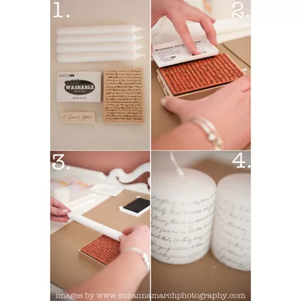 Μπορείς ακόμα να σταμπώσεις το κερί. Μια όμορφη, λιτή και κομψή λύση είναι οι στάμπες-κείμενο πάνω στις οποίες μπορείς να κυλήσεις προσεκτικά το κερί σου.