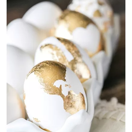 Φύλλα χρυσού: Για την πιο glamorous της παρέας, κόλλησε με αραιωμένη ατλακόλ φύλλα χρυσού πάνω στο αυγό, σε ανακόνιστα σχήματα.